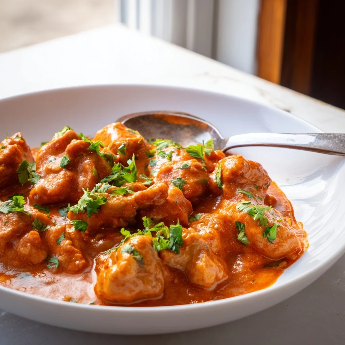 This classic Indian dish features tender chicken thighs marinated in yogurt and spices, then cooked in a rich, velvety tomato-based sauce. The creamy curry gets its signature flavor from garam masala, cumin, and a finish of butter and cream. Ready in just 45 minutes, this mildly spiced curry balances warmth and comfort perfectly.