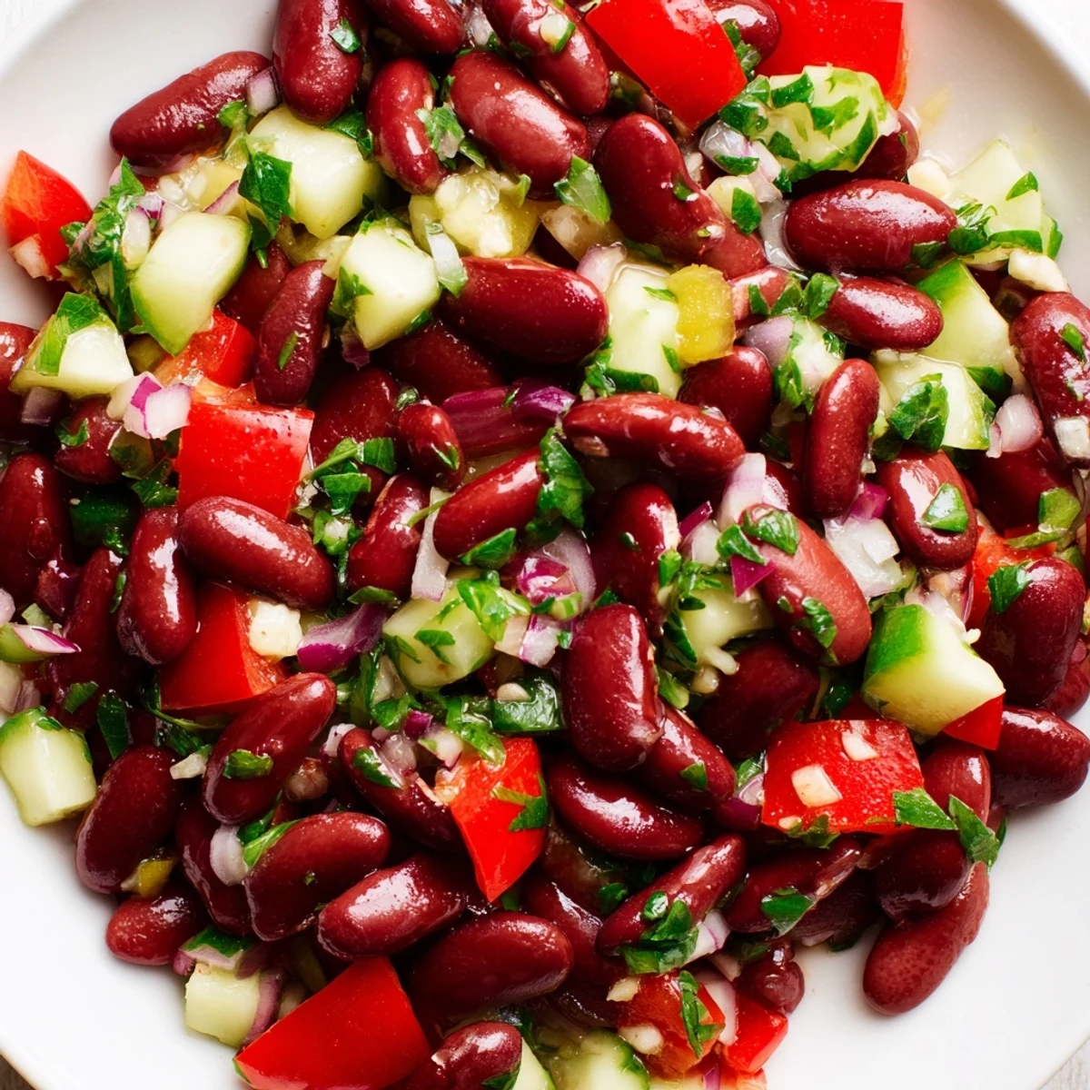 This refreshing kidney bean salad combines protein-rich legumes with crisp red bell pepper, cucumber, cherry tomatoes, and aromatic red onion. A tangy vinaigrette made with olive oil, red wine vinegar, and Dijon mustard ties everything together beautifully.