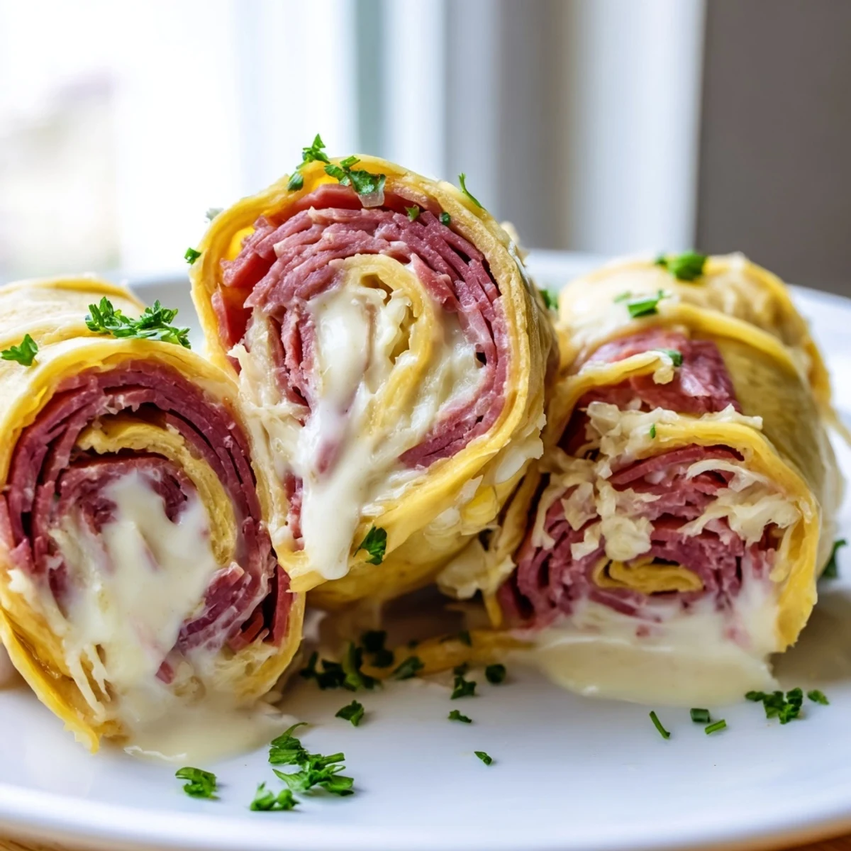 Naturally gluten-free and keto-friendly, these wraps work beautifully with pastrami or turkey as alternatives to corned beef. Serve them warm, sliced in half, with extra dressing on the side for dipping.